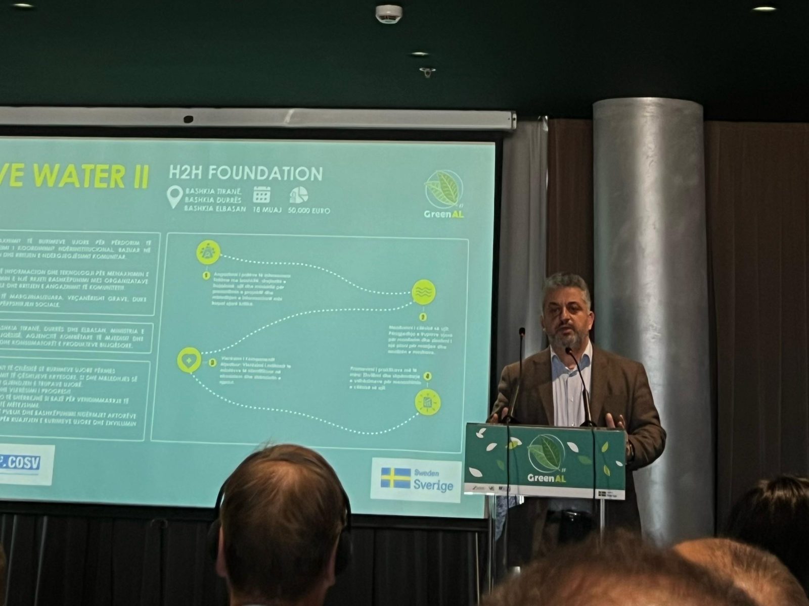 Në kuadër të projektit #GreenAL , Erjon Kalaja prezantoi projektin fitues “Active Water II” i cili do të zbatohet nga H2H Foundation në bashkëpunim me Art Kontakt dhe North Green Association në bashkitë dhe qarqet e Tiranës, Durrësit, Elbasanit, Fier dhe Shkoder, me një kohëzgjatje prej 18 muajsh. Objektivi i përgjithshëm është përmirësimi i menaxhimit të burimeve ujore për përdorim të qëndrueshëm, përmes një tryeze bashkëpunuese që lehtëson koordinimin ndërinstitucional, bazuar në monitorime të cilësisë së ujërave në terren dhe rritjen e ndërgjegjësimit komunitar.