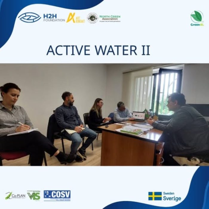 Në kuadër të projektit #GreenAL , më 18 prill 2025, H2H Foundation në bashkëpunim me Art Kontakt dhe North Green Association, në ambientet e Agjencisë Kombëtare të Mjedisit (AKM) prezantuan projektin “Active Water II”, që synon monitorimin e cilësisë së ujërave sipërfaqësorë në bashkitë Tiranë, Durrës, Elbasan, Fier dhe Shkodër.